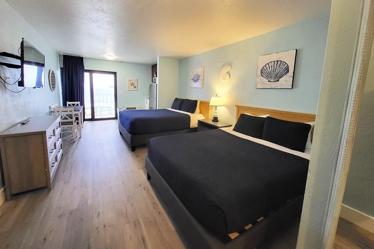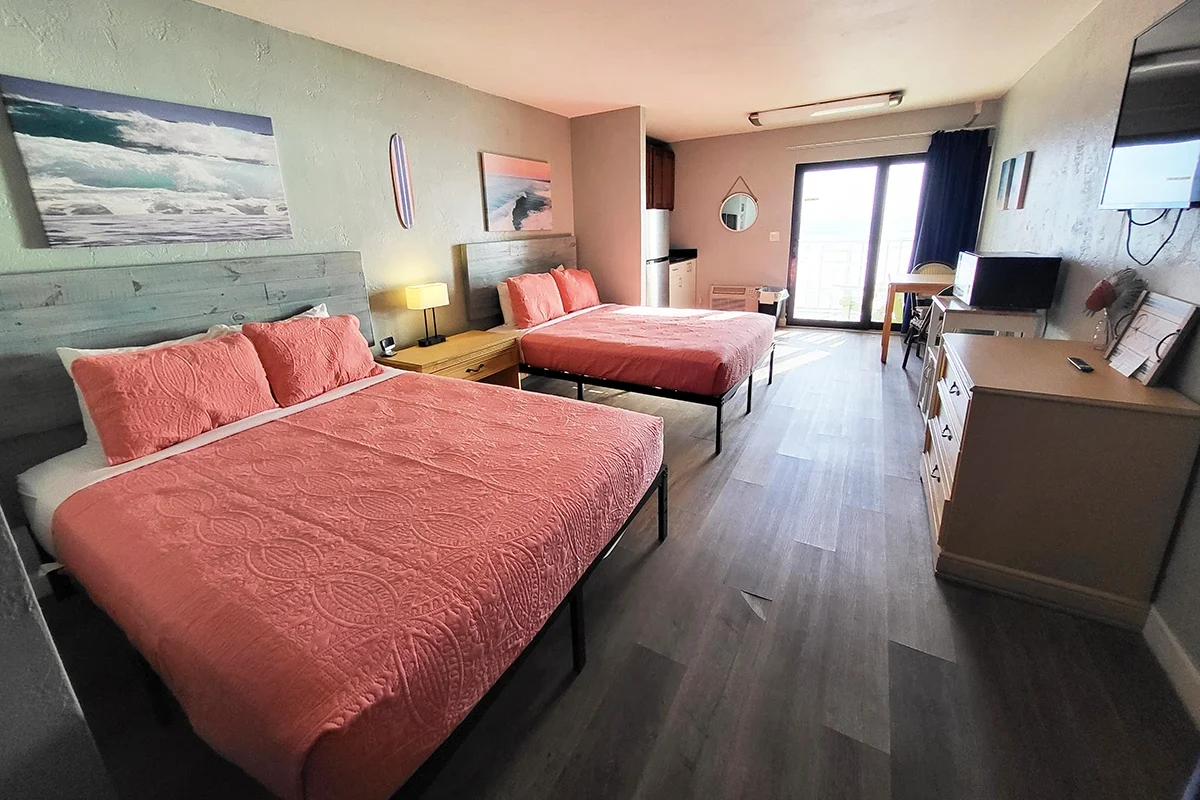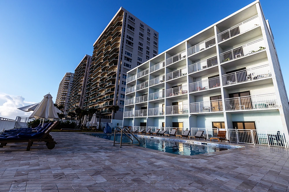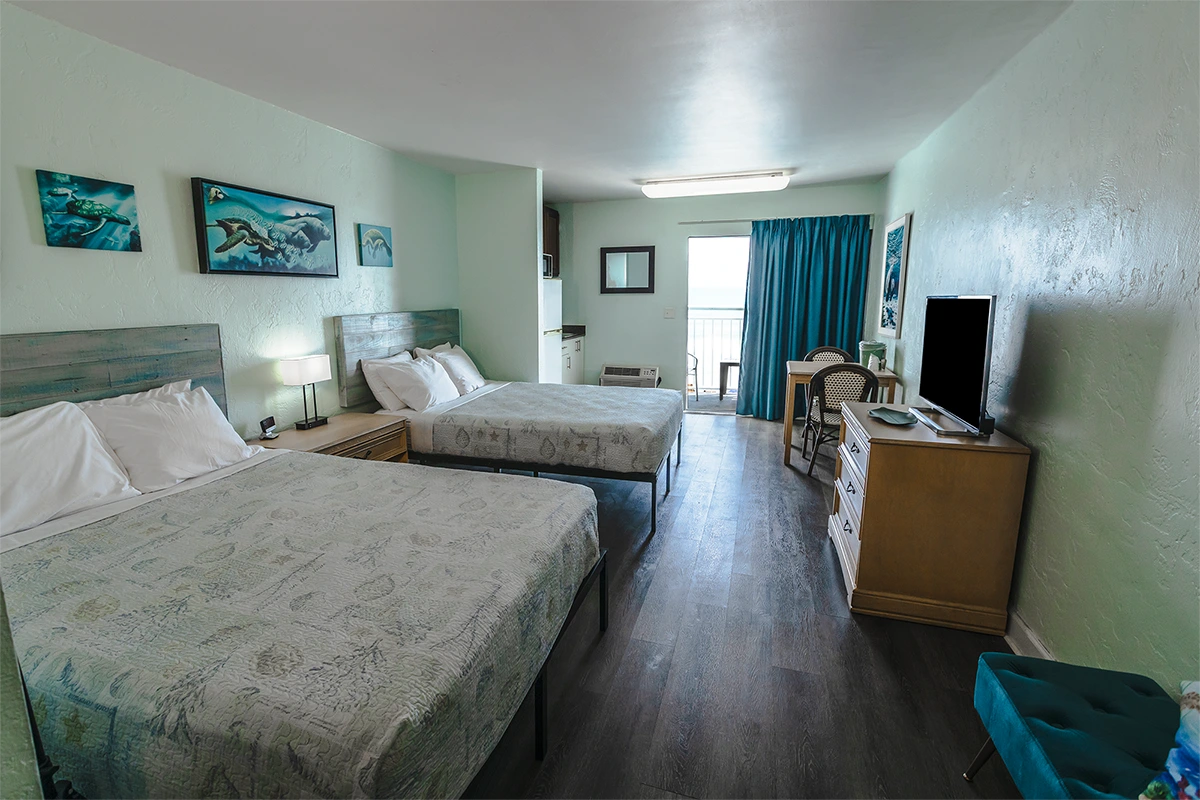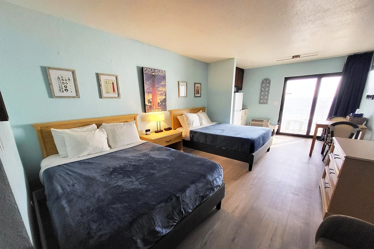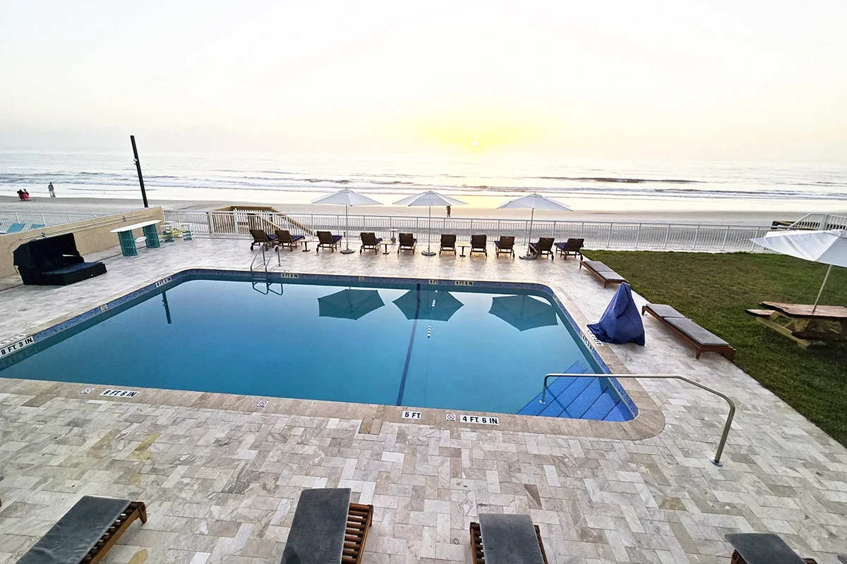 Beachside Hotel boasts the perfect location at Daytona Beach Shores, overlooking the pool and the Atlantic Ocean. Breathe in the fresh ocean air as you relax on your oceanfront balcony, gazing upon sandy miles of natural beach life and picture-perfect sunrises. Our oceanfront suites with kitchenettes are sure to provide the perfect getaway.