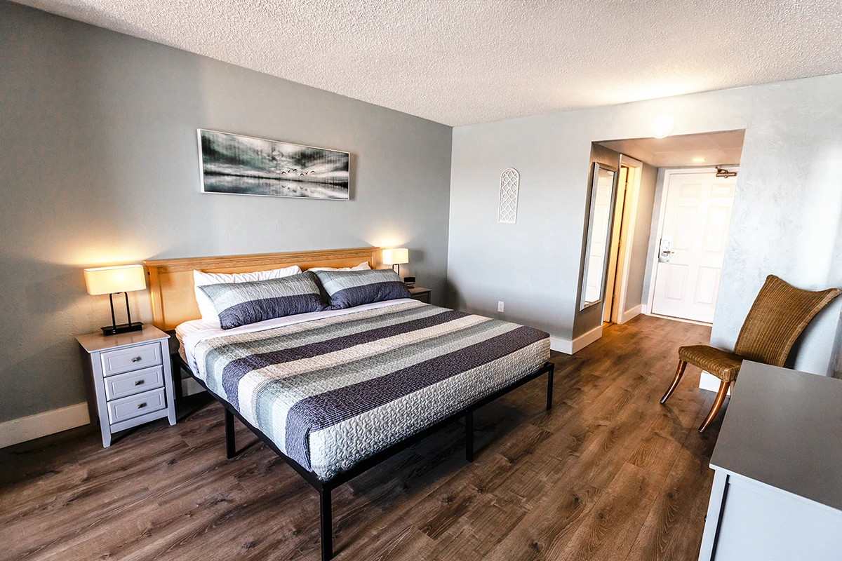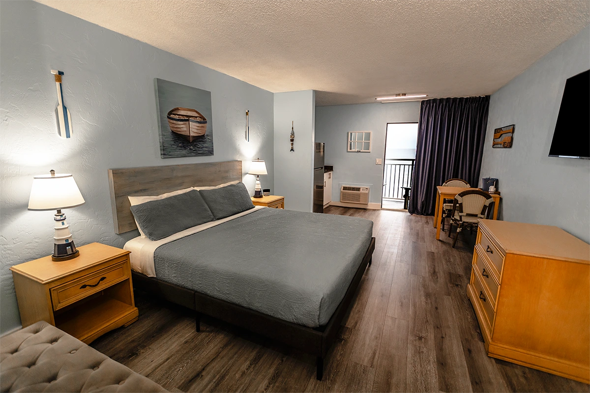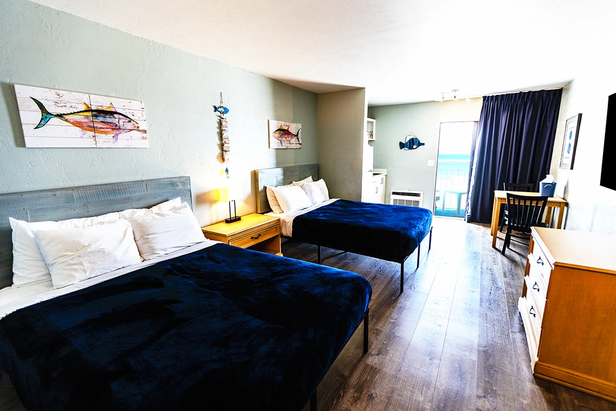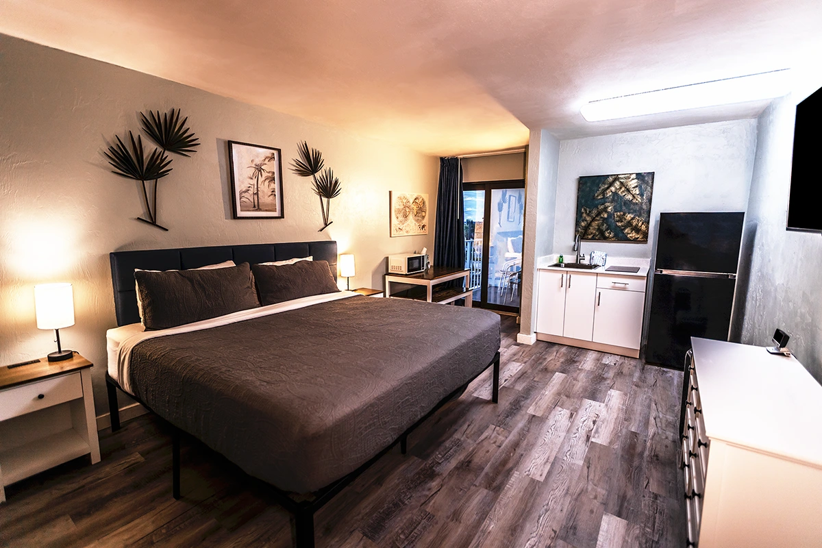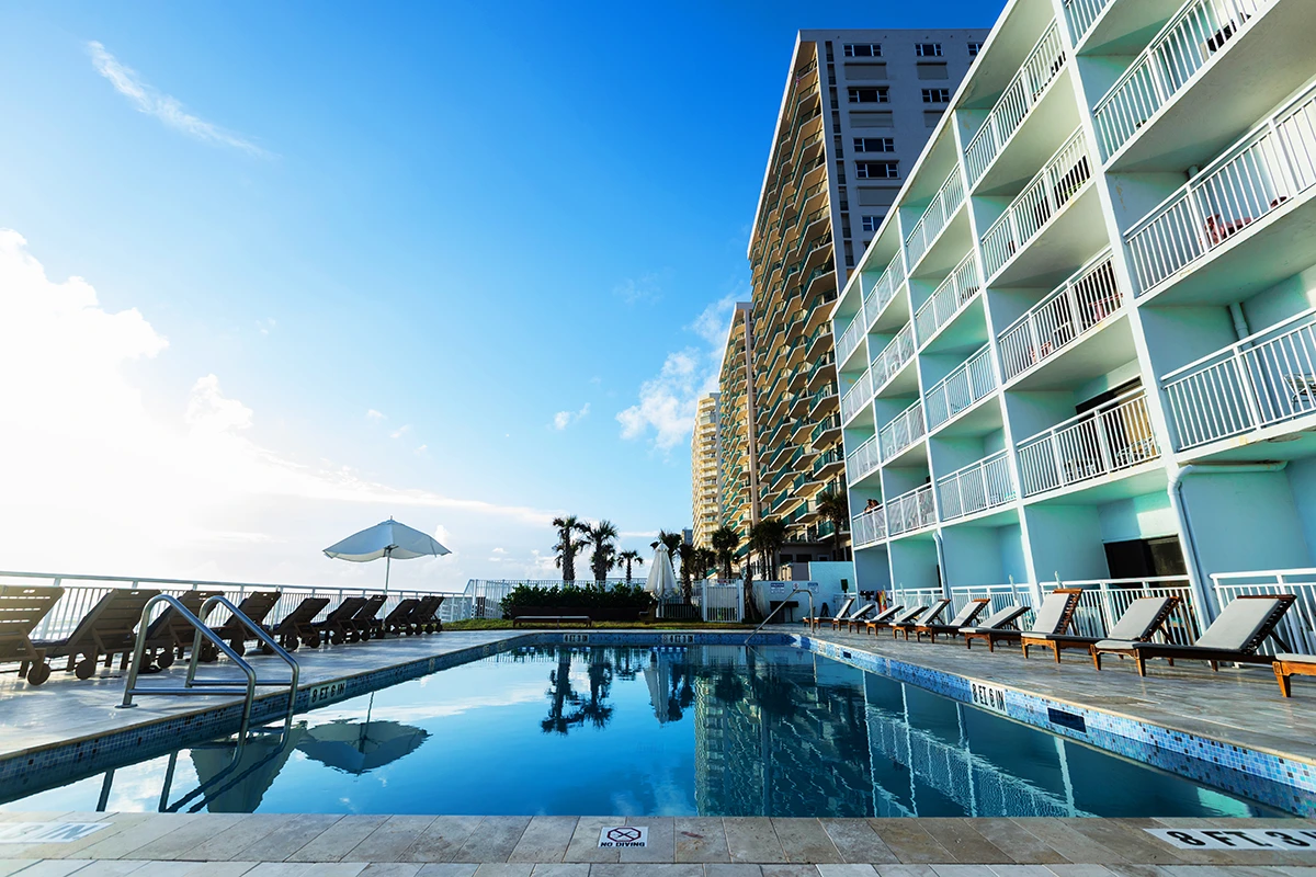 Beachside Hotel boasts the perfect location at Daytona Beach Shores, overlooking the pool and the Atlantic Ocean. Breathe in the fresh ocean air as you relax on your oceanfront balcony, gazing upon sandy miles of natural beach life and picture-perfect sunrises. Our oceanfront suites with kitchenettes are sure to provide the perfect getaway.