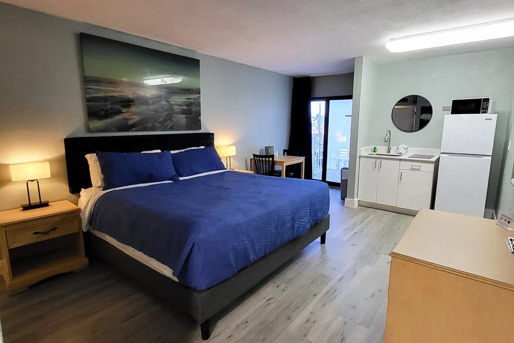 Beachside Hotel boasts the perfect location in Daytona Beach Shores, overlooking the pool and the Atlantic Ocean. Breathe in the fresh ocean air as you relax on your oceanfront balcony, gazing upon sandy miles of natural beach life and picture-perfect sunrises. Our oceanfront suites with kitchenettes are sure to provide the perfect getaway.