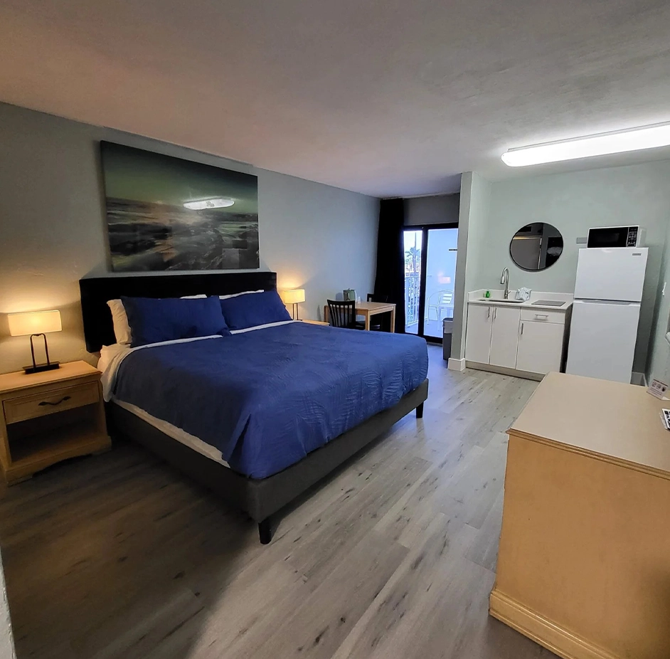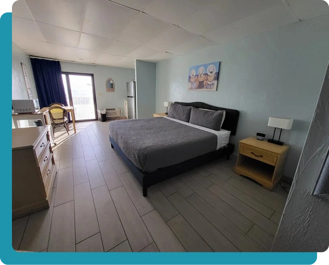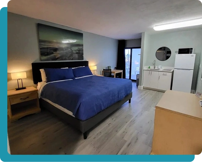Beachside Hotel boasts the perfect location at Daytona Beach Shores, overlooking the pool and the Atlantic Ocean. Breathe in the fresh ocean air as you relax on your oceanfront balcony, gazing upon sandy miles of natural beach life and picture-perfect sunrises. Our oceanfront suites with kitchenettes are sure to provide the perfect getaway.
