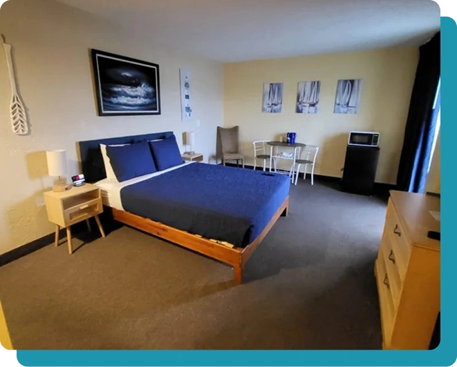 What could be better than sitting on your private balcony, favorite beverage in hand, as the sun starts to set and the city lights come alive. This beautifully appointed sunset view room features 1 queen bed, mini refrigerator, microwave, TV and balcony overlooking the city.